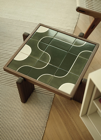 L’idée de la table basse Linha - dont le nom choisit correspond à la traduction du mot en portugais qui signifie « ligne » - est née d’une étude sur le modernisme brésilien, et plus particulièrement sur l’œuvre de l’architecte paysagiste Roberto Burle Marx, avec la volonté de traduire cette architecture paysagère sculpturale en une collection de carreaux. Le studio Friends of Paula a de fait développé un design dans lequel une ligne unique relie visuellement chaque carreau, les unifiant en un motif cohérent et modulable et ouvrant la voie à une infinité de compositions.