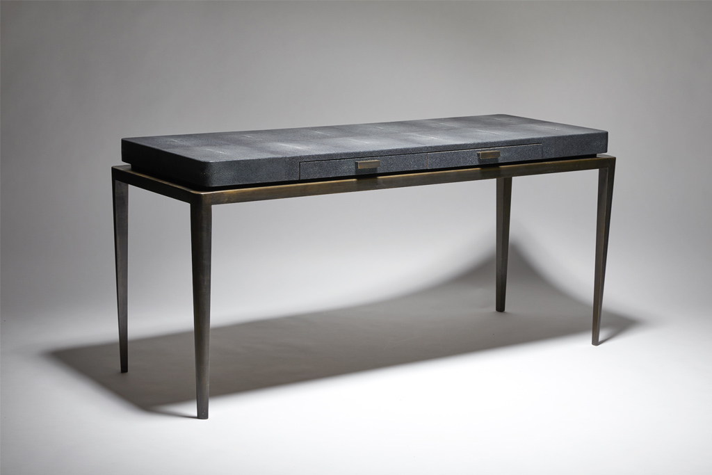 Le bureau SOA, en noyer américain avec bandeau en laque brillante et grand tiroir intérieur cuir (de 120 à 180 cm) connaît un grand succès, tout comme la console de 35 cm de large. La console Tara, au piétement en noyer américain, chêne naturel ou hêtre teinté noir sous un plateau laqué brillant jaune, est réalisée à la main. La console Mina, sur son piétement en laiton finition bronze, porte un plateau en marbre Emperador, Sky Grey, Carrare blanc, Noir Marquina ou Noir Sahara….