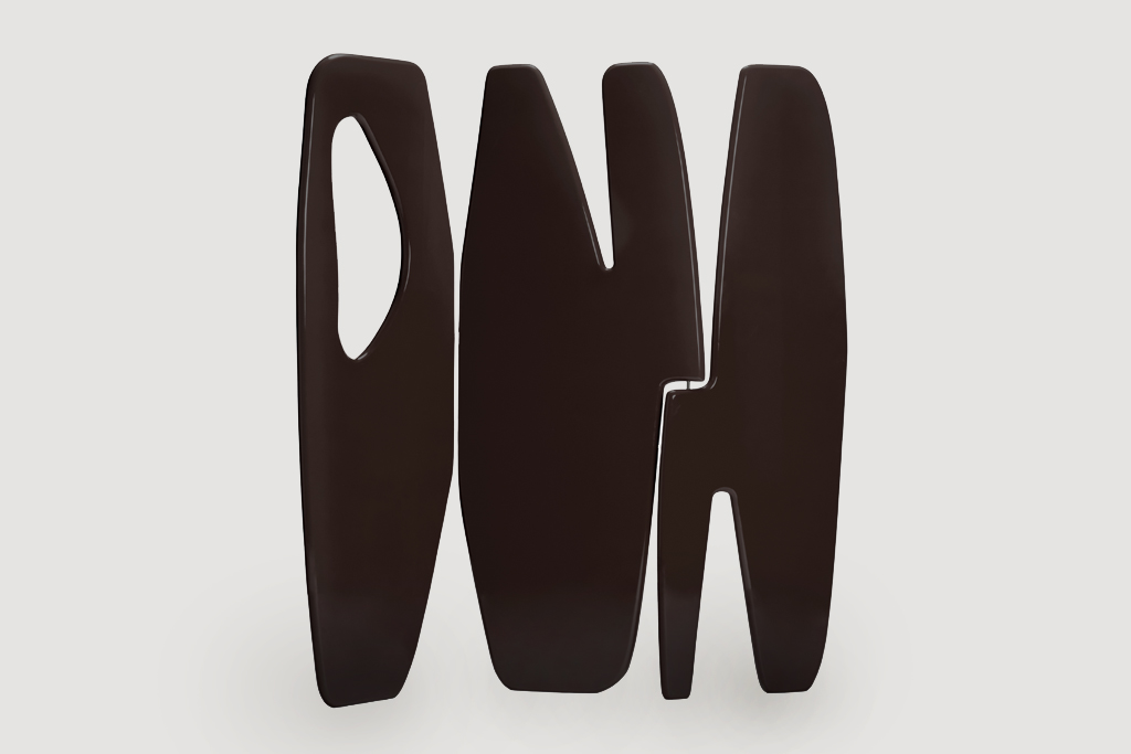 Parmi les créations les plus emblématiques du designer, le paravent Panama, sorte de grande figure abstraite aux formes primitives, revient dans une nouvelle édition en laque noire. Un quatrième coloris, après le bleu céruléen dévoilé à Milan, la version rouge et celle orange présentée à Art Paris en début d’année. À ses côtés, la collection Babylone, composée de deux tables basses, d’une table d’appoint et d’une console, marie les courbes presque animales du bois sculpté aux lignes du marbre monochrome Nero Maquina. Un ensemble fort, entre matière brute et sophistication, qui célèbre la beauté des contrastes et la finesse des détails à l’image de la table Ooma. Dans un autre registre, et toujours en hommage aux Arts Décoratifs et aux savoir-faire qu’ils font résonner, le designer a dévoilé deux pièces limitées à huit exemplaires. D’une part, le bureau EDHA, fruit d’un travail précis sur les proportions, avec un plateau entièrement gainé de galuchat et un piètement en laiton finition bronze, et d’autre part, la table en noyer Lala, qui réintroduit l’usage de l’émail cloisonné dans le mobilier contemporain.
