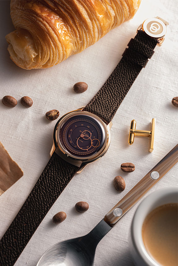En s’associant à la Monnaie de Paris, la marque parisienne Beaubleu, fondée en 2017 et identifiable à ses aiguilles rondes, ouvre une nouvelle voie dans le savoir-faire horloger. Par la technique du monnayage, le cadran n’est plus assemblé, mais conçu comme une pièce frappée. La matière se creuse ou s’élève sous le choc, avant d’être gravée pour accrocher la lumière. Le cadran devient ainsi monobloc, délaissant les éléments rapportés au profit d’une surface unique traitée de diverses manières.