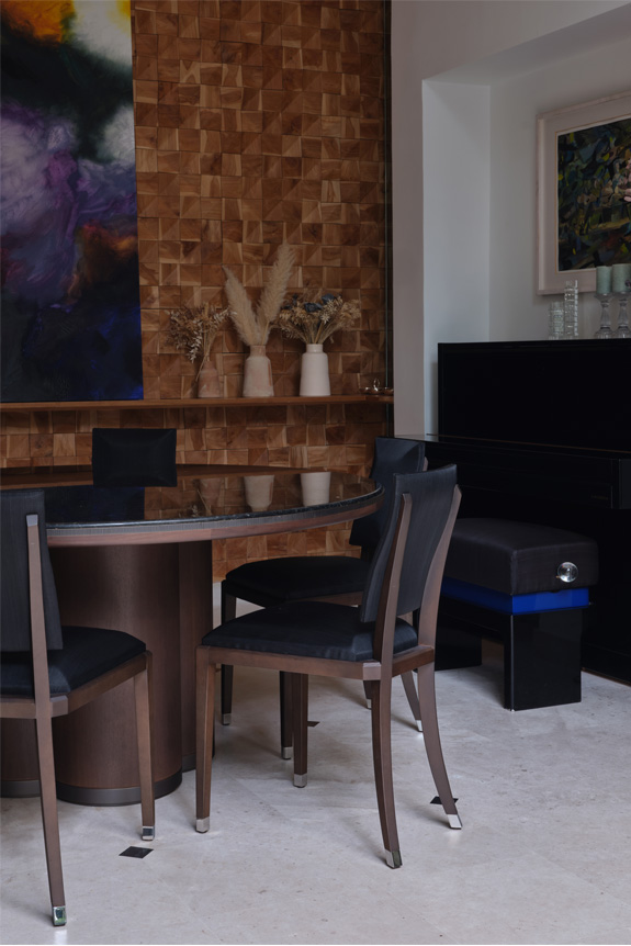 Plus qu’une simple galerie dédiée au mobilier d'Andrée Putman, la maison regroupe également des collaborations développées avec différentes maisons, telles que Christofle, Lalique ou THG. Icone du monochrome, l’architecte est aussi célébrée par une salle de bains, aménagée avec un carrelage noir et blanc en référence à des projets intérieure du studio à l’image du Morgans Hotel à New York. Une réalisation phare que l’on retrouve dans l'ensemble d’archives incluant des objets issus de collaborations passées, des dessins, des documents photographiques et des œuvres iconographiques. Enfin, la projection du documentaire Andrée Putman, la grande dame du design, réalisé pour Arte en 2023, est également proposée.