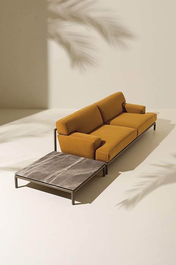 Avec Lodge, la marque italienne et le designer ont imaginés un système lounge aux proportions généreuses, où la rigueur des structures métalliques dialogue avec la chaleur du teck et la douceur des textiles outdoor. Une collection composée d’un fauteuil, d’un bain de soleil, d’un canapé, d’une table basse et éléments d’appoint pensés pour s’adapter aussi bien aux terrasses urbaines qu’aux grands espaces ouverts sur la mer.