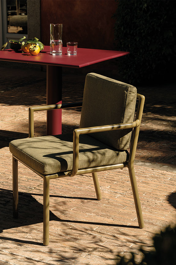 Enfin, la collection Betsy, plus expressive, introduit une note de caractère. Ces assises enveloppantes et structures élancées revisitent l’esprit des chaises d’atelier dans une version outdoor raffinée où jeux de couleurs, textures et finitions révèlent une collection à la fois fonctionnelle et chaleureuse.