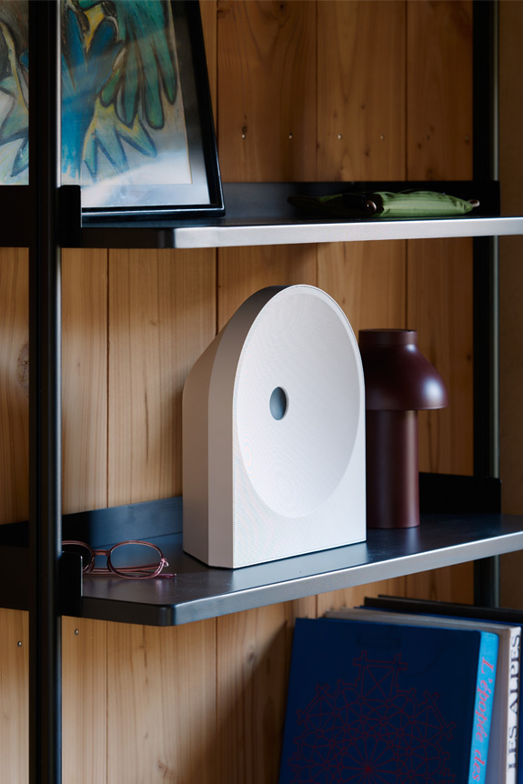 « Chez Samsung, nous n’avons jamais vraiment su comment s’équilibrent le design et la technologie, explique Guillaume Rault. Néanmoins, nous cachons de plus en plus cette dernière au profit du design, car c’est lui qui détermine notre affection pour l’objet. » Ici, ce n’est donc pas la technologie qui a conditionné l’apparence, mais l’inverse. « Les ingénieurs du Samsung Audio Lab, basé en Californie, se sont adaptés à la forme pour développer le système interne. Et l’enceinte a de minimaliste que l’arrière arrondi de la Music Studio 5 épouse presque parfaitement le profil du haut-parleur », analyse Erwan Bouroullec. Une ergonomie qui ne passe ni par la maniabilité de l’enceinte ni par sa miniaturisation, mais par l’interaction entre la taille, le volume, le poids et la puissance de l’objet. « Music Studio 5 et Music Studio 7 sont ergonomiques vis-à-vis de ce qui les entoure. Il ne s’agissait pas de faire l’objet le plus léger ou le plus petit, mais de créer une véritable atmosphère. » Une question relative à l’environnement de l’objet et, de fait, au besoin d’universalité. Car, aussi invisible soit-il, le son demeure porteur d’émotions, et c’est donc tout naturellement que l’enceinte, même éteinte, doit accompagner ce ressenti.