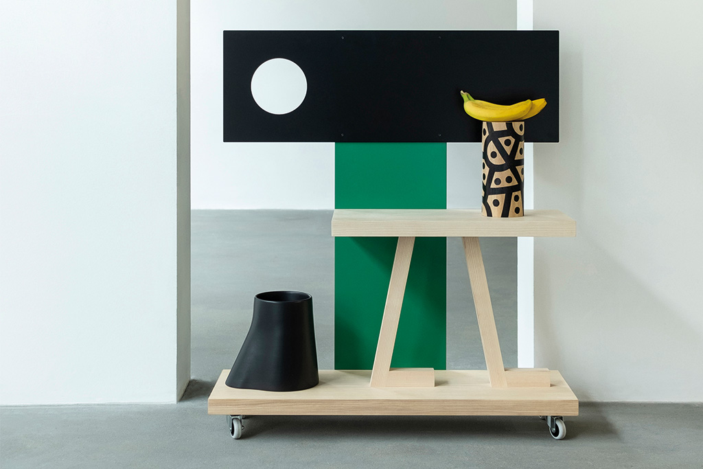 Pour ses projets de mobilier, de scénographie et d’exposition, Maria Jeglinska accorde une grande importance à la relation que l’objet entretient avec l’espace. « On peut parler d’échelle de l’objet, mais il faut aussi prendre en compte l’espace, car un objet n’est jamais vraiment seul : il s’inscrit dans un contexte spécifique. » Une idée qu’elle explore notamment dans son projet Portable Walls, réalisé pour le musée des Arts décoratifs de Budapest. À partir d’un objet choisi dans la collection du musée – en l’occurrence, une chaise du designer hongrois Sándor Mikó –, elle imagine une série de quatre structures amovibles aux formes abstraites, déplaçables dans l’espace pour créer différentes atmosphères selon leur disposition. Une réflexion sur la place occupée par les objets dans l’espace qui l’anime depuis longtemps : « La relation de l’objet à l’espace a toujours été importante pour moi. J’ai mené de nombreux projets autour de ce lien, de ces mini-architectures qui peuvent fonctionner ensemble ou de manière indépendante. » Une démarche qu’elle poursuit dans ses scénographies, notamment à la Villa Noailles, en travaillant sur l’architecture de l’espace et ainsi placer l’objet au centre de l’attention. « On passe autant de temps à regarder une chaise qu’à s’asseoir dessus. Dans mon travail, je cherche une ergonomie aussi bien visuelle que fonctionnelle. »
