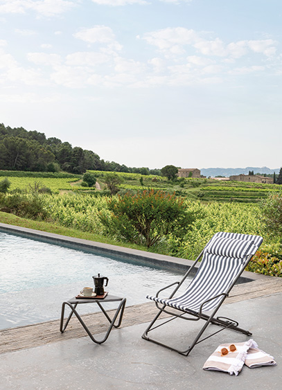 Lignes simples, formes graphiques, matières minérales et naturelles, il a sollicité les meilleurs artisans pour atteindre un résultat cosy et chaleureux. Loro Piana Interiors, Veronese, Cappellini, Oscar Ono ou Roche Bobois fabriquent pour lui. Le restaurant 39V, avenue George V et l’Hôtel des Arts et Métiers à Paris, l’Hôtel Belle Plage à Cannes ou la Bibliothèque du Domaine des Etangs en Charente, lui ont déjà livré leurs espaces. Tout a été fait ici sur mesure (à l’exception de deux chaises Roche Bobois, DOT et Identities). Le demi-cylindre cannelé en chêne massif qui recouvre certains murs des espaces publics et des chambres fait écho au sol en chêne noir carbonisé à la flamme et recouvert d’une résine protectrice. Un design chaleureux et bienveillant dans des chambres de 15 m2 pour les plus petites, avec lit Queen Size et chaque soir, cinéma privé à tous les étages à 21h et 23h.