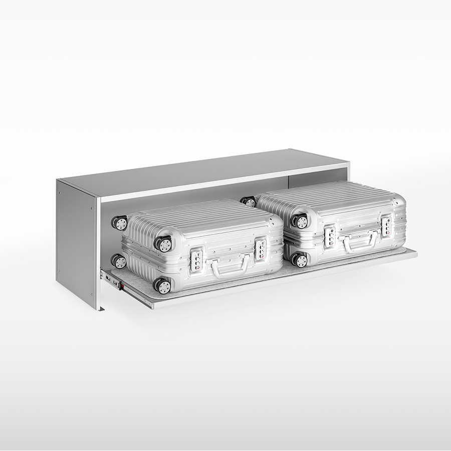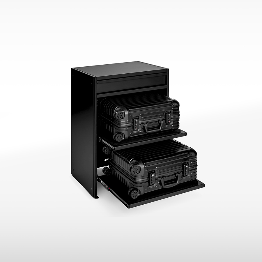 Présentée à Milan du 21 au 24 avril, la collaboration RIMOWA Lehni marque la rencontre de deux maisons centenaires réunies par une même culture du matériau. D’un côté, RIMOWA, dont les valises en aluminium accompagnent le mouvement depuis des décennies ; de l’autre, Lehni, référence suisse du mobilier moderniste et des systèmes modulaires. Ensemble, ils imaginent un banc et un tiroir conçus pour accueillir les valises cabine, deux solutions pensées pour la maison. Réalisées en aluminium anodisé noir ou argent, ces pièces, fabriquées à la main à Zurich, jouent sur un équilibre précis entre usage et mise en scène. Le banc peut recevoir jusqu’à deux valises, exposées simplement côte à côte dans une structure ouverte. Le tiroir, lui, propose un rangement plus compact, avec une composition empilée et un compartiment fermé pour les objets du quotidien. Dans les deux cas, chaque détail compte. Les étagères sont habillées d’un feutre mat anti-rayures développé sur mesure, discret mais essentiel, qui protège les surfaces tout en renforçant l’impression de douceur.