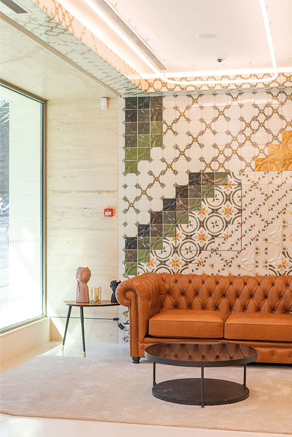 La qualité du rendu des carreaux Viúva Lamego réside pour beaucoup dans la restitution des tons chauds des couleurs. Une spécificité qui attire toutes les générations de créateurs – à l’image du jeune artiste visuel Add Fuel, célèbre pour ses remarquables panneaux céramiques de rue, et qui a récemment collaboré avec la marque pour la réalisation d’une pièce originale au sein du Luster hotel de Lisbonne – et qu’expliquait l’artiste Bela Silva au sujet du panneau d’azulejos peints à la main, Un Oiseau Mexicain Qui Voyage Dans Le Temps Du Mexique À L’Inde, réalisé avec l’entreprise, lors de sa présentation au salon Maison & Objet 2022 de Paris. « Je voulais sortir de ma palette chromatique habituelle et être audacieuse, en utilisant d’autres couleurs qui ne sont pas si usuelles dans mes œuvres, comme les rouges et les oranges », précisait-elle alors. « Maintenant, je veux explorer des couleurs plus chaudes ».