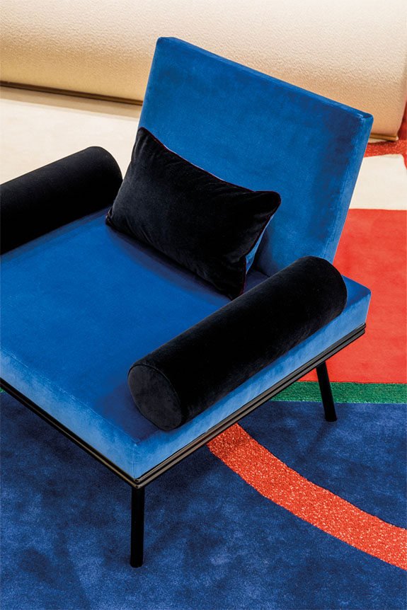 « Le modus operandi de cette collection ? Le même que Jacques-Émile Ruhlmann à l'époque. Travailler ensemble, avec les meilleurs artisans, pour créer un ensemble qui ait du sens », résume Edgar Jayet. Si la collection a vu le jour en une quinzaine de mois grâce à l’investissement de six partenaires (Les Ateliers de la Chapelle, Jouffre, les Ateliers Fey, Maison Fontaine, Atelier Yszé), spécialisés dans la serrurerie d'art, la gainerie ou encore le travail du laiton, c'est avec la Maison Lelièvre que les contours de la collection ont été tissés. « Tout s'est fait lors d'une rencontre dans le showroom, explique Emmanuel Lelièvre. Je lui ai montré un certain nombre de créations récentes, mais également d'archives Art déco que nous présentions dans le cadre d’une rétrospective en janvier. » Une immersion à l’origine d’un corpus d’étoffes très différentes choisi par Edgar Jayet. Parmi elles, une moire noire synthétique à l'aspect ancien. « C'est un tissu très technique adapté au yachting ou à la restauration, mais qui rappelle très bien les textiles Art déco et c’est ce qui m’a plu », explique le créateur. Un choix sobre, combiné à Rêverie, une réédition ornementale d'une des archives de la marque, et réinterprétée par le designer sur le dos de la malle. « Comme nous n'avions pas le temps de modifier les tissus existants, le petit twist a été d'utiliser Rêverie à l'envers. » Une manière pour le créateur de flouter légèrement le visuel en lui apportant une touche plus contemporaine. Un petit pas de côté dans l'utilisation classique des textiles d'ameublement, dont une gamme en fibres naturelles a également été utilisée. Trois sortes très différentes sur le plan stylistique, mais également technique, « venues conforter l'idée d'un mobilier de voyage ». Le Collectionneur, « ce n'était pas simplement l'idée de faire des pièces historiques visibles dans une galerie, mais de repenser certains codes pour faire de l'usuel », résume Emmanuel Lelièvre. Plus qu'un hommage aux ensembliers de l'Art déco, c'est donc surtout un hommage à l'union des savoir-faire que Le Bain du Collectionneur semble abreuver.